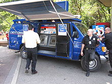 A postal interactive kiosk may also share many of the same components as an ATM (including a vault), but only dispenses items relating to postage.