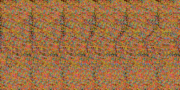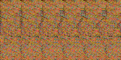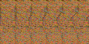 A random dot autostereogram encodes a 3D scene which can be "seen" with proper viewing technique. Click on thumbnail to see full-size image.