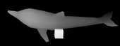 This random dot autostereogram features a raised shark with fine gradient on a flat background.