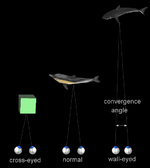 There are two ways an autostereogram can be viewed: wall-eyed and cross-eyed. Most autostereograms (including those in this article) are designed to be viewed in only one way, which is usually wall-eyed. Wall-eyed viewing requires that the two eyes adopt a relatively parallel angle, while cross-eyed viewing requires a relatively convergent angle.