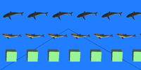 Smooth gradients can also be achieved with an intelligible pattern, assuming that the pattern is complex enough and does not have big, horizontal, monotonic patches. A big area painted with monotonic colour without change in hue and brightness does not lend itself to pixel shifting, as the result of the horizontal shift is identical to the original patch. The following depth map of a shark with smooth gradient produces a perfectly readable autostereogram, even though the 2D image contains small monotonic areas; the brain is able to recognize these small gaps and fill in the blanks. While intelligible, repeated patterns are used instead of random dots, this type of autostereogram is still known by many as a Random Dot Autostereogram, because it is created using the same process.