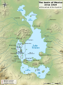 From the 13th century, the Valley of Mexico was the heart of Aztec civilization: here the capital of the Aztec Triple Alliance, the city of Tenochtitlan, was built upon raised islets in Lake Texcoco. The Triple Alliance formed a tributary empire expanding its political hegemony far beyond the Valley of Mexico, conquering other city states throughout Mesoamerica. At its pinnacle, Aztec culture had rich and complex mythological and religious traditions, as well as reaching remarkable architectural and artistic accomplishments. In 1521 Hernán Cortés, along with a large number of Nahuatl speaking indigenous allies, conquered Tenochtitlan and defeated the Aztec Triple Alliance under the leadership of Hueyi Tlatoani Moctezuma II. Subsequently the Spanish founded the new settlement of Mexico City on the site of the ruined Aztec capital, from where they proceeded with the process of colonizing Central America.