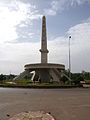 The BCEAO Tower at 20 storeys is the tallest building in the West African nations. It sits of the north ("right") bank of the River Niger in the city centre of Bamako. The BCEAO Tower is the Malian headquarters of the Central Bank of West African States, which provides development banking and government financial and currency services in several Francophone West African nations. Classified as Neo-Sudanic architecture, it is modeled on the Sudano-Sahelian architecture of the famous mosques of Djenne and Timbuktu. The building is located in the busy Commune III neighbourhood, where "Avenue Moussa Tavele" meets the waterside boulevard between the two main Bamako bridges : King Fahd Bridge a block west and Martyrs Bridge three blocks east. Just to the east of the BCEAO complex, a park and formal garden marks where the diagonally running "Boulevard du Peuple" reaches the river. By contrast, small market gardens and launching points or river canoes lie along the river front. With the Hotel de l'Amitié and the Bamako Grand Mosque, the BCEAO Tower is one of three landmarks visible across most of the city. Also of note is the Bamako Cathedral.