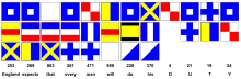 The term England was widely used at the time to refer to the United Kingdom; the British fleet included significant contingents from Ireland, Scotland and Wales. Unlike the photographic depiction, this signal would have been shown on the mizzen mast only and would have required 12 'lifts'.