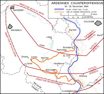 The Fifth Panzer Army under General Hasso von Manteuffel was assigned to the middle attack route with the objective of capturing Brussels.