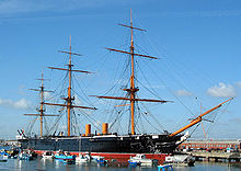 The word battleship was coined around 1794 and is a contraction of the phrase line-of-battle ship, the dominant wooden warship during the Age of Sail. The term came into formal use in the late 1880s to describe a type of ironclad warship, now referred to by historians as pre-dreadnought battleships. In 1906, the commissioning of HMS Dreadnought heralded a revolution in battleship design. Following battleship designs, influenced by HMS Dreadnought, were referred to as " dreadnoughts".