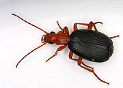 - Ground beetles (family Carabidae) are common predators of many different insects and other arthropods, including fly eggs, caterpillars, wireworms and others.