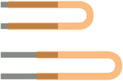The compensating system was applied to horns to serve a different purpose. It was used to allow a double horn in F and B flat to ease playing difficulties in the high register. In contrast to the system in use in tubas and euphoniums, the default 'side' of the horn is the longer F horn, with secondary lengths of tubing coming into play when the first, second or third valves are pressed; pressing the thumb valve takes these secondary valve slides and the extra length of main tubing out of play to produce a shorter B-flat horn. A later "full double" design has completely separate valve section tubing for the two sides, and is considered superior, although rather heavier in weight.