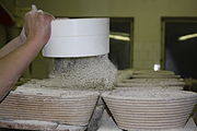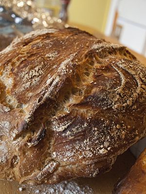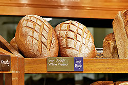 Sourdough is a type of bread produced by a long fermentation of dough using naturally occurring yeasts and lactobacilli. In comparison with breads made with cultivated yeast, it usually has a mildly sour taste because of the lactic acid produced by the lactobacilli.