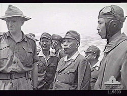 On 10 June 1945 the Australian 9th Division landed at Muara under Operation Oboe Six to recapture Borneo from the Japanese. They were supported by American air and naval units. Brunei town was bombed extensively and recaptured after three days of heavy fighting. Many buildings were destroyed including the Mosque. The Japanese forces in Brunei, Borneo, and Sarawak, under Lieutenant-General Masao Baba, formally surrendered at Labuan on 10 September 1945. The British Military Administration took over from the Japanese and remained until July 1946.