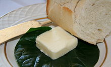 Butter is a dairy product made by churning fresh or fermented cream or milk. It is generally used as a spread and a condiment, as well as in cooking, such as baking, sauce making, and pan frying. Butter consists of butterfat, milk proteins and water.