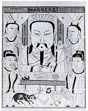 ![]() An 18th century Qing Dynasty print depicting Cai Lun as the patron saint of paper making |