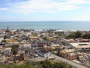 View of Cape Coast seafront from Cape Coast Slave Castle