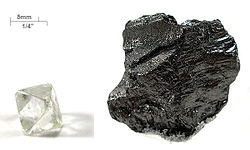 | Mohs hardness | 10 (diamond) 1-2 (graphite) |