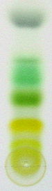 Paper chromatography is a technique that involves placing a small dot or line of sample solution onto a strip of chromatography paper. The paper is placed in a jar containing a shallow layer of solvent and sealed. As the solvent rises through the paper, it meets the sample mixture, which starts to travel up the paper with the solvent. This paper is made of cellulose, a polar substance, and the compounds within the mixture travel farther if they are non-polar. More polar substances bond with the cellulose paper more quickly, and therefore do not travel as far.