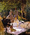 On the Bank of the Seine, Bennecourt (1868), an early example of plein-air impressionism, in which a gestural and suggestive use of oil paint was presented as a finished work of art.