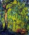 During World War I, in which his younger son Michel served and his friend and admirer Clemenceau led the French nation, Monet painted a series of weeping willow trees as homage to the French fallen soldiers. In 1923, he underwent two operations to remove his cataracts: the paintings done while the cataracts affected his vision have a general reddish tone, which is characteristic of the vision of cataract victims. It may also be that after surgery he was able to see certain ultraviolet wavelengths of light that are normally excluded by the lens of the eye, this may have had an effect on the colors he perceived. After his operations, he even repainted some of these paintings, with bluer water lilies than before the operation.
