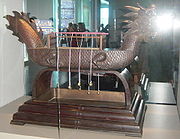 A scale model of Su Song's Astronomical Clock Tower, built in 11th century Kaifeng, China. It was driven by a large waterwheel, chain drive, and escapement mechanism.