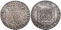 1768 silver Spanish Dollar, or eight reales coin, minted throughout the Spanish Empire