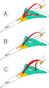 A controller in the cockpit allowed the visor to be retracted and the nose to be lowered to 5° below the standard horizontal position for taxiing and takeoff. Following takeoff and after clearing the airport, the nose and visor were raised. Prior to landing, the visor was again retracted and the nose lowered to 12.5° below horizontal for maximum visibility. Upon landing the nose was raised to the five-degree position to avoid the possibility of damage.