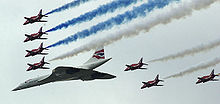 As a symbol of national pride, an example from the BA fleet made occasional flypasts at selected Royal events, major air shows and other special occasions, sometimes in formation with the Red Arrows. On the final day of commercial service, public interest was so great that grandstands were erected at Heathrow Airport. Significant numbers of people attended the final landings; the event received widespread media coverage.