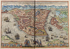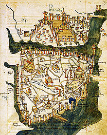 Constantinople (Greek: Κωνσταντινούπολις, Κωνσταντινούπολη – Konstantinoúpolis, Konstantinoúpoli; Latin: Constantinopolis; Ottoman Turkish: قسطنطینیه, Kostantiniyye; and modern Turkish: İstanbul) was the capital city of the Eastern Roman or Byzantine Empire, the Latin and the Ottoman Empire. It was founded in AD 330, at ancient Byzantium as the new capital of the Roman Empire by Constantine the Great, after whom it was named. In the 12th century, the city was the largest and wealthiest European city.
