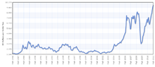 The price of copper has historically been unstable, and it quintupled from the 60-year low of US$0.60/lb (US$1.32/kg) in June 1999 to US$3.75 per pound (US$8.27/kg) in May 2006. It dropped to US$2.40/lb (US$5.29/kg) in February 2007, then rebounded to US$3.50/lb (US$7.71/kg) in April 2007. In February 2009, weakening global demand and a steep fall in commodity prices since the previous year's highs left copper prices at US$1.51/lb.
