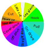 There is a wide variety of shots played in cricket. The batsman's repertoire includes strokes named according to the style of swing and the direction aimed: e.g., " cut", "drive", "hook", "pull".