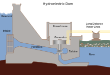 Most hydroelectric power comes from the potential energy of dammed water driving a water turbine and generator; to boost the power generation capabilities of a dam, the water may be run through a large pipe called a penstock before the turbine. A variant on this simple model uses pumped storage hydroelectricity to produce electricity to match periods of high and low demand, by moving water between reservoirs at different elevations. At times of low electrical demand, excess generation capacity is used to pump water into the higher reservoir. When there is higher demand, water is released back into the lower reservoir through a turbine. (For example see Dinorwic Power Station.)