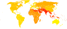 Globally hearing loss affects about 10% of the population to some degree. It caused moderate to severe disability in 124.2 million people as of 2004 (107.9 million of whom are in low and middle income countries). Of these 65 million acquired the condition during childhood. At birth ~3 per 1000 in developed countries and more than 6 per 1000 in developing countries have hearing problems.