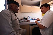 Tutu has been a tireless campaigner for health and human rights, and has been particularly vocal in support of controlling TB and HIV. He is Patron of the Desmond Tutu HIV Foundation, a registered Section 21 non-profit organization, and has served as the honorary chairman for the Global AIDS Alliance and is patron of TB Alert, a UK charity working internationally. In 2003 the Desmond Tutu HIV Centre was founded in Cape Town, while the Desmond Tutu TB Centre was founded in 2003 at Stellenbosch University. Tutu suffered from TB in his youth and has been active in assisting those afflicted, especially as TB and HIV/AIDS deaths have become intrinsically linked in South Africa. “Those of you who work to care for people suffering from AIDS and TB are wiping a tear from God’s eye,” Tutu said.