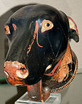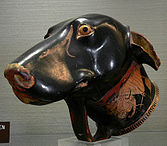 Ancient Greek rhyton in the shape of a dog's head, made by Brygos, early 5th century BC. Jérôme Carcopino Museum, Department of Archaeology, Aleria