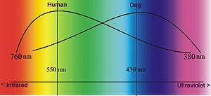 Dog's visual colour perception compared with humans.