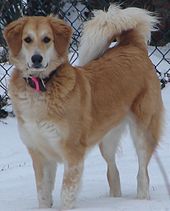A heavy winter coat with countershading in a mixed-breed dog