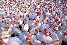 Space allowance for commercially reared turkeys is often severely limited. For example, recommendations by the Farm Animal Welfare Council equate to providing adult birds each weighing 20 kg with 891 cm2, despite turkeys of this weight each requiring 1700 cm2 simply to stand without touching another bird.