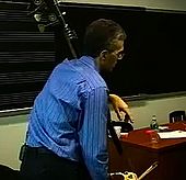 Manhattan School of Music professor Timothy Cobb teaching a bass lesson in the late 2000s