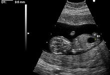 Ultrasound imaging can be used to screen for Down syndrome. Increased fetal nuchal translucency (NT) is an indicator of increased risk of Down syndrome. A 2003 systematic review of 30 studies of NT in Down syndrome found an average sensitivity of 75-80% with a false positive rate of 5.8-6% (95% confidence intervals). Therefore, while the false positive rate is too high for NT to be used alone as a screening test, it is useful as part of a combined test. Ultrasound measurement of NT is usually performed between 11 and 14 weeks gestation.
