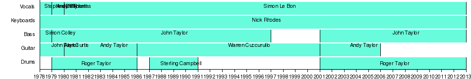 | Past members | Andy Taylor Stephen Duffy Simon Colley Andy Wickett Jeff Thomas Alan Curtis Warren Cuccurullo Sterling Campbell |
