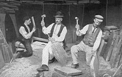 Although a much smaller industry than coal, the slate industry in Wales became the world's largest supplier in the 19th century and had an enduring impact on the landscape of North Wales. At its height in the 1890s, there were dozens of quarries employing around 15,000 men, although they suffered from the boom and bust nature of the construction industry. As most of the workforce were drawn from rural, Welsh-speaking communities, slate quarrying was described by one historian as "the most Welsh of Welsh industries".