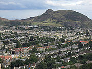 Arthur's Seat viewed across southern parts of Edinburgh from Blackford Hill