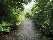 Edinburgh is drained by the Water of Leith, which finds its source at the Colzium Springs in the Pentland Hills and runs for 29 kilometres (18 mi) through the south and west of the city, emptying into the Firth of Forth at Leith. The nearest the river gets to the city centre is at Dean Village on the edge of the New Town, where a deep gorge is spanned by the Dean Bridge, designed by Thomas Telford and built in 1832 for the road to Queensferry. The Water of Leith Walkway is a mixed use trail that follows the river for 19.6 kilometres (12.2 mi) from Balerno to Leith.