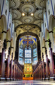 The fan vaulted ceiling dominates the interior of St John's Church in central Edinburgh.
