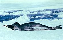 The known aquatic predators are both mammals: the Leopard Seal (Hydrurga leptonyx), which takes some adult birds, as well as fledglings soon after they enter the water, and the Orca (Orcinus orca), which takes adult birds.
