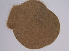 Crushed minerals are attacked by hydrochloric or sulfuric acid that transforms insoluble rare-earth oxides into soluble chlorides or sulfates. The acidic filtrates are partially neutralized with caustic soda (sodium hydroxide) to pH 3–4. Thorium precipitates out of solution as hydroxide and is removed. After that the solution is treated with ammonium oxalate to convert rare earths into their insoluble oxalates. The oxalates are converted to oxides by annealing. The oxides are dissolved in nitric acid that excludes one of the main components, cerium, whose oxide is insoluble in HNO3. The solution is treated with magnesium nitrate to produce a crystallized mixture of double salts of rare-earth metals. The salts are separated by ion exchange. In this process, rare-earth ions are sorbed onto suitable ion-exchange resin by exchange with hydrogen, ammonium or cupric ions present in the resin. The rare earth ions are then selectively washed out by suitable complexing agent. Erbium metal is obtained from its oxide or salts by heating with calcium at 1450 °C under argon atmosphere.
