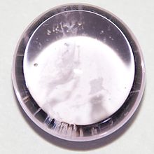 Erbium(III)chloride in sunlight, showing some pink fluorescence of Er+3 from natural ultraviolet.