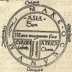 Whatever the origin of the name of the mythological figure, Εὐρώπη is first used as a geographical term in the 6th century BC, by Greek geographers such as Anaximander and Hecataeus. Anaximander placed the boundary between Asia and Europe along the Phasis River (the modern Rioni) in the Caucasus, a convention still followed by Herodotus in the 5th century BC. But the convention received by the Middle Ages and surviving into modern usage is that of the Roman era used by Roman era authors such as Posidonius, Strabo and Ptolemy, who took the Tanais (the modern Don River) as the boundary. The term "Europe" is first used for a cultural sphere in the Carolingian Renaissance of the 9th century. From that time, the term designated the sphere of influence of the Western Church, as opposed to both the Eastern Orthodox churches and to the Islamic world. The modern convention, enlarging the area of "Europe" somewhat to the east and the south-east, develops in the 19th century.