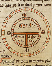 12th century T and O map representing the inhabitated world as described by Isidore of Seville in his Etymologiae. (chapter 14, de terra et partibus).