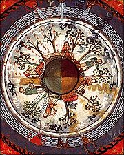 12th century depiction of a spherical earth with the four seasons (book "Liber Divinorum Operum" by Hildegard of Bingen).