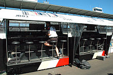 A typical pitwall control centre, from which the team managers and strategists communicate with their drivers and engineers over the course of a testing session or a race weekend.