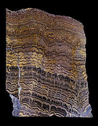 Stromatolites are layered accretionary structures formed in shallow water by the trapping, binding and cementation of sedimentary grains by biofilms of microorganisms, especially cyanobacteria (commonly known as blue-green algae). Stromatolites provide some of the most ancient fossil records of life on Earth, dating back more than 3.5 billion years ago.